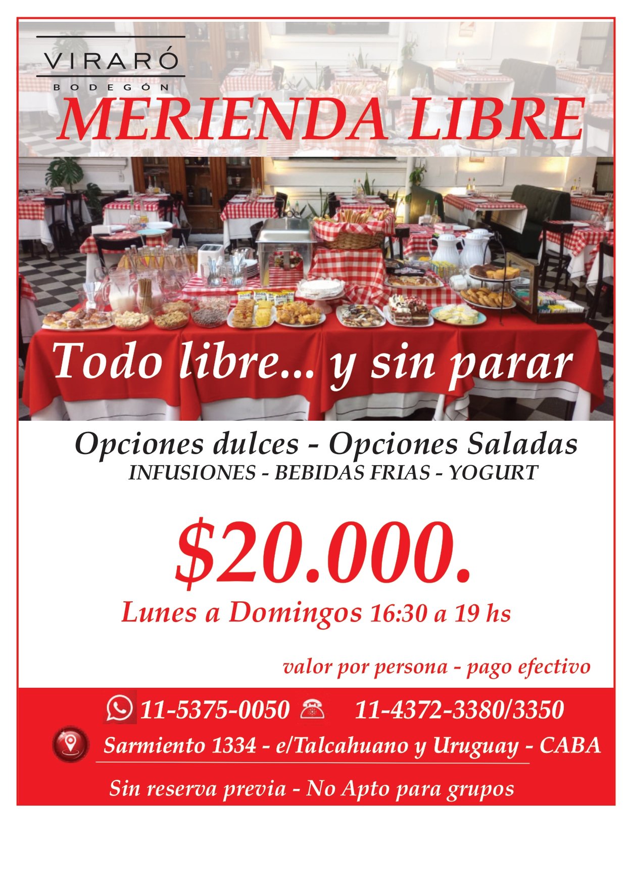 Si estás buscando una experiencia única de merienda libre en pleno microcentro de Buenos Aires, Viraró Bodegón te invita a descubrir su nueva modalidad de Tenedor Libre a precios inigualables. Ubicado en el emblemático edificio del Club El Progreso (Sarmiento 1334), este restaurante se ha convertido en el punto de encuentro ideal para los amantes de las meriendas abundantes y de calidad.